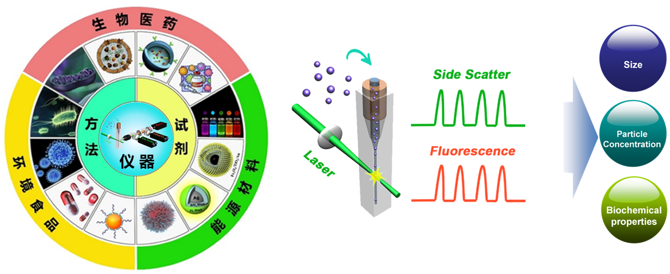 The development of nano-flow cytometry for applications in nano-biotechnology, nanomedicine, microorganism detection, molecular biology, and cellular biology.